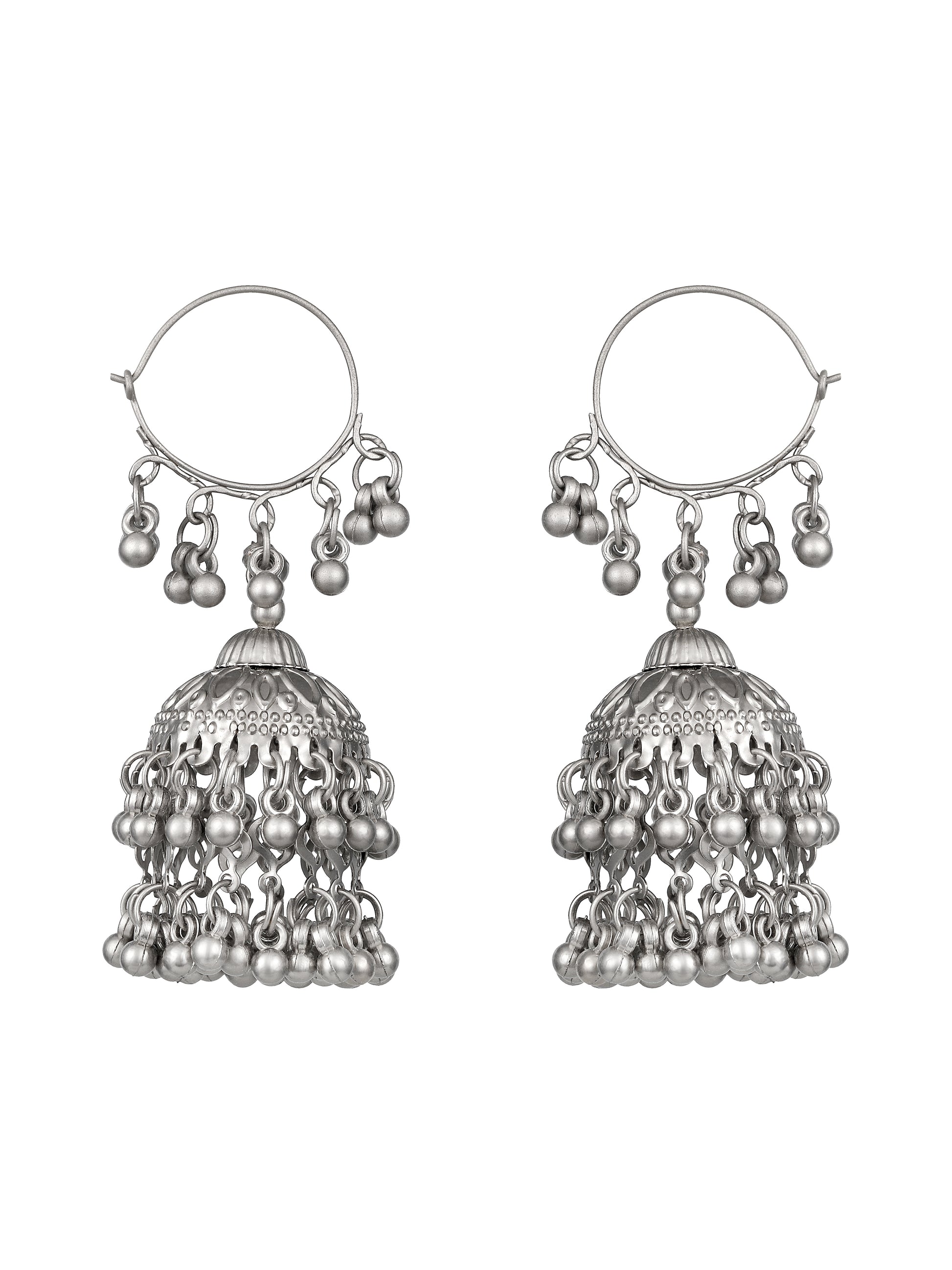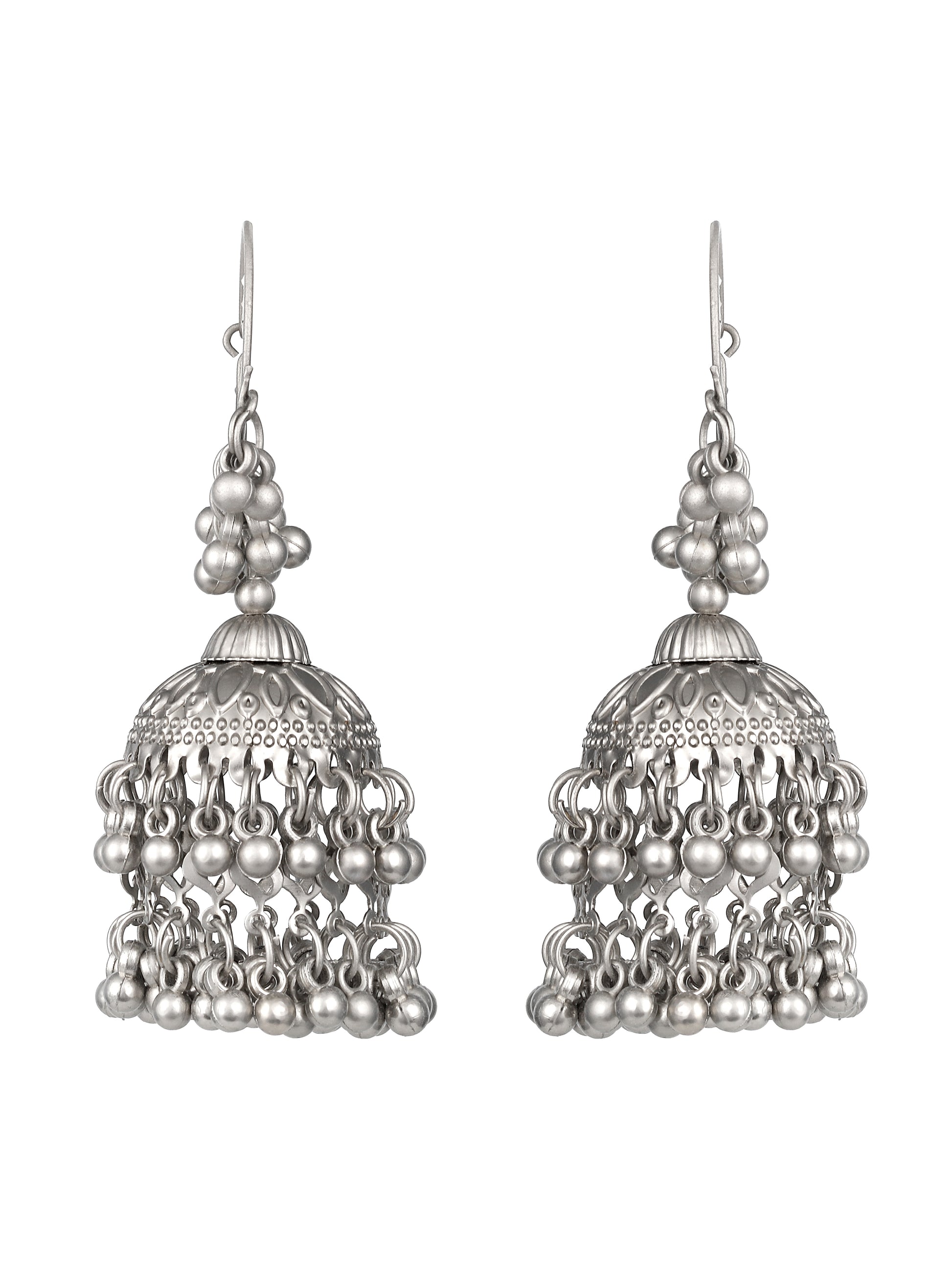 Silver-Plated Beaded Dome Shaped Jhumkas