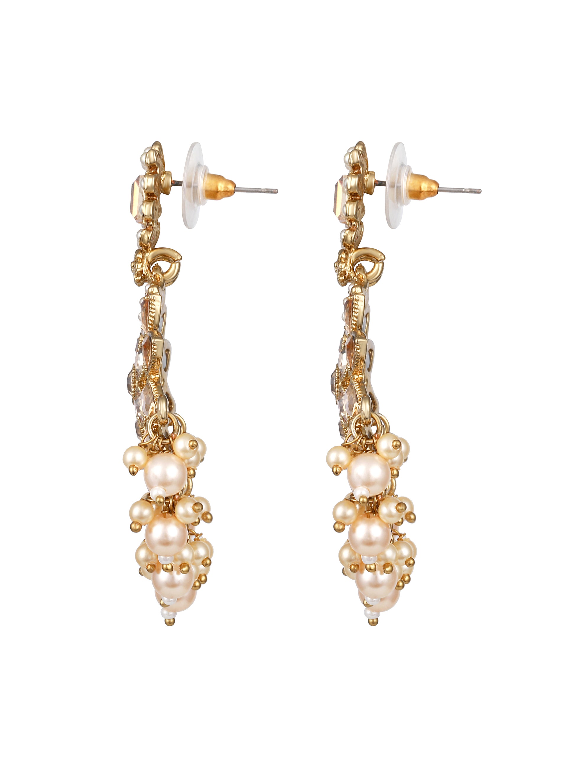 Gold-toned, cream contemporary drop earrings, gold-plated, has artificial stones studded and pearls beaded details
