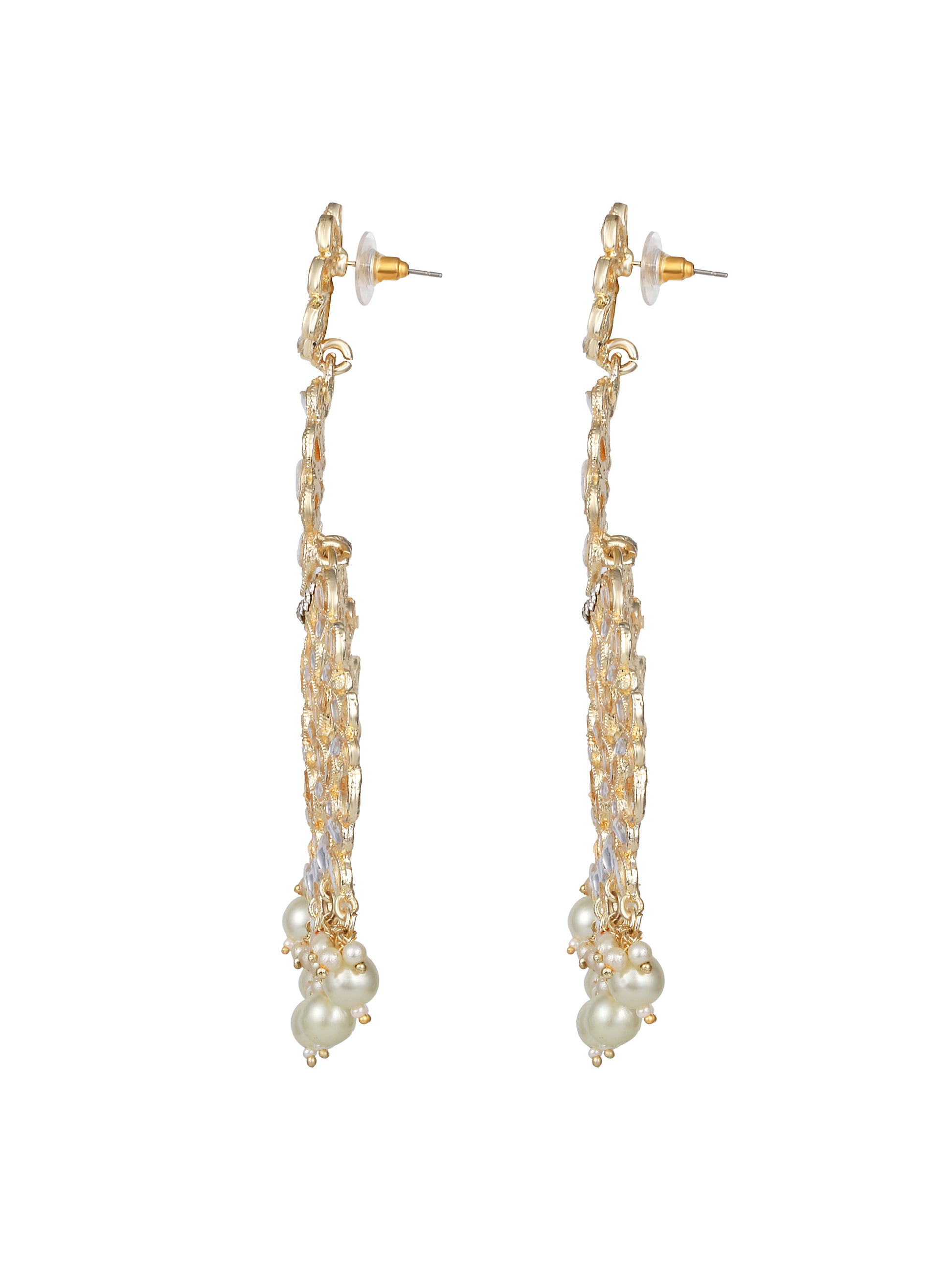 Gold-Plated Kundan Studded & Pearls Beaded Contemporary Drop Earrings