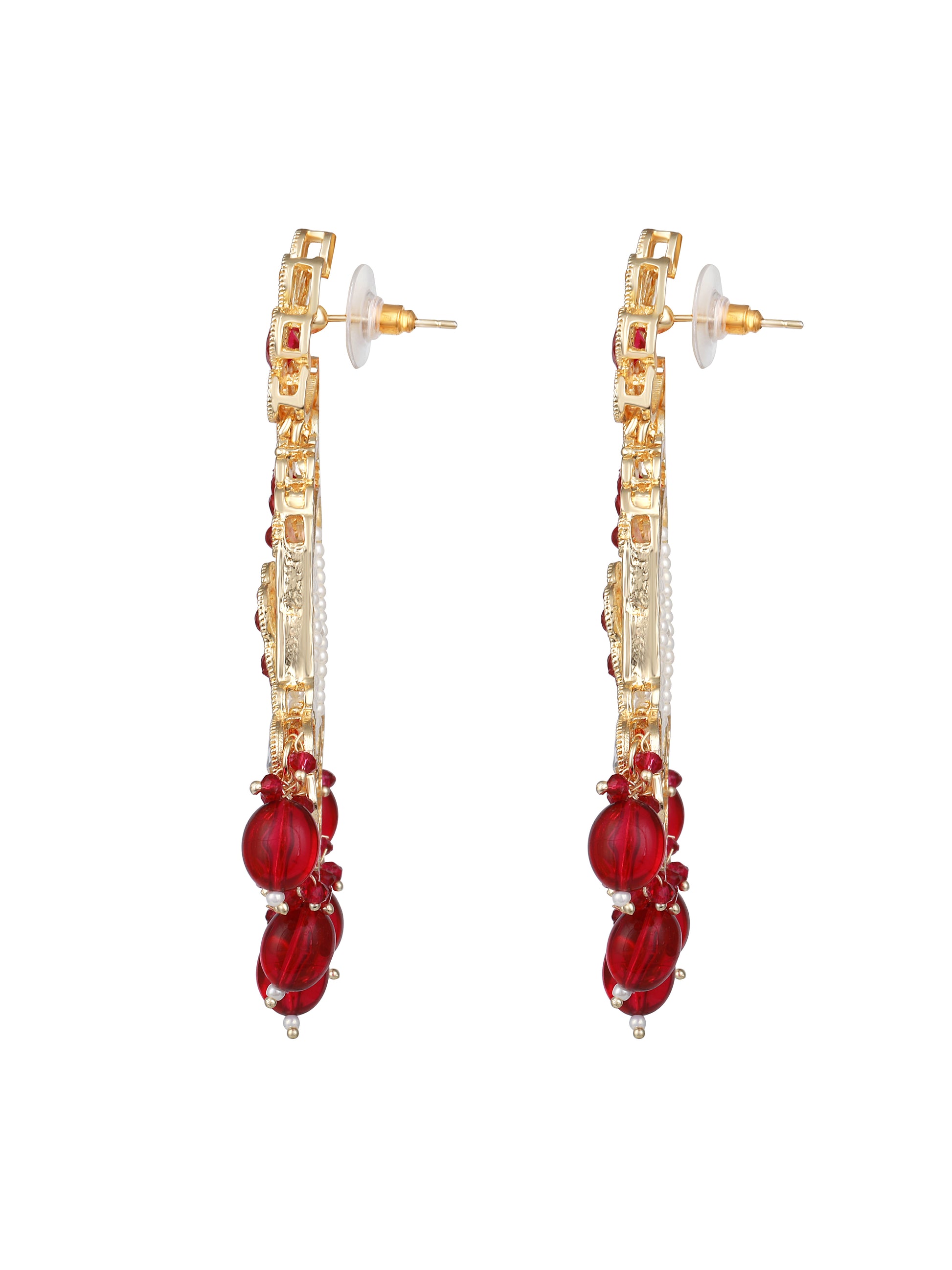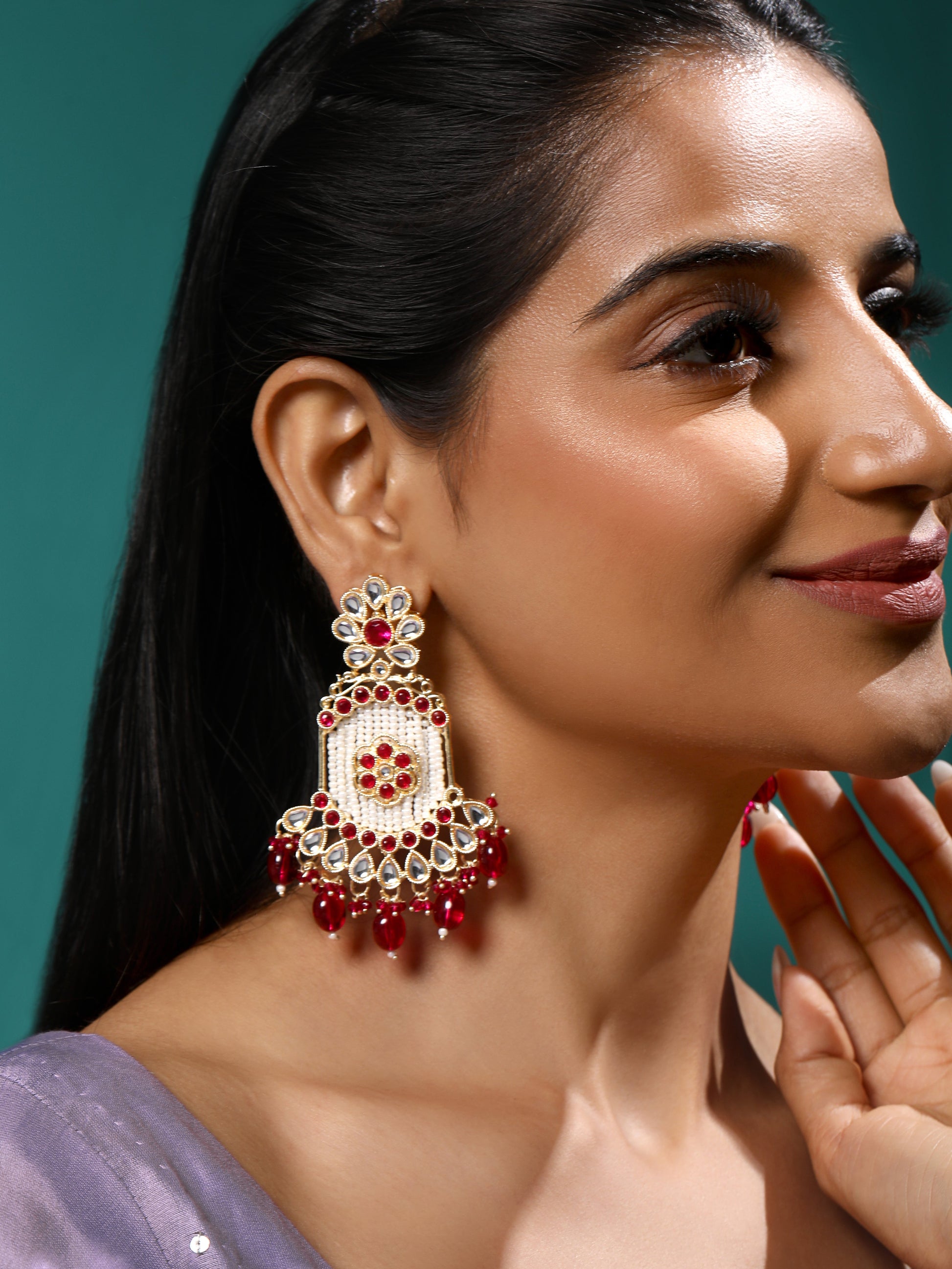 Gold-Plated Kundan Studded & Pearls Beaded Contemporary Drop Earrings