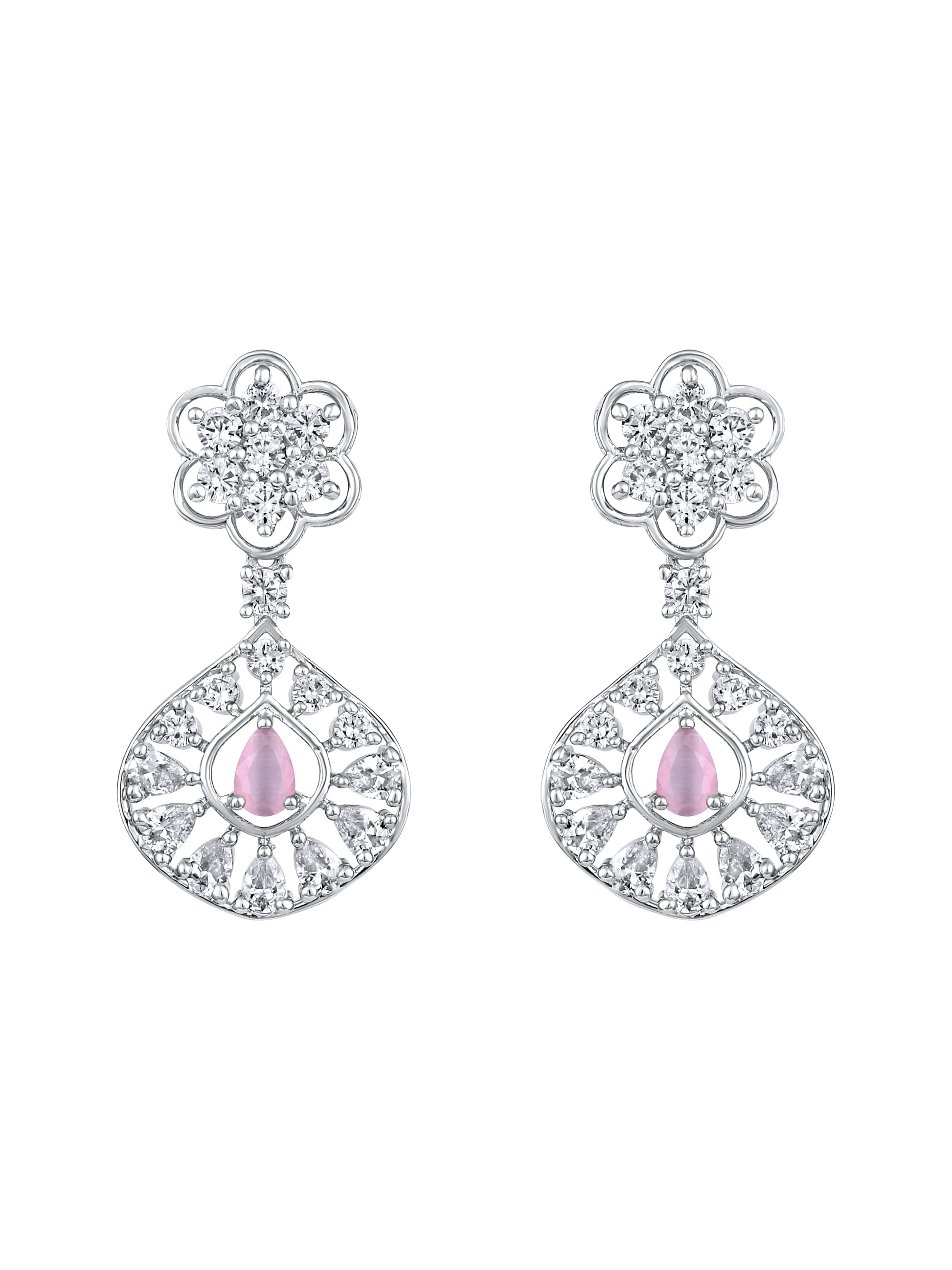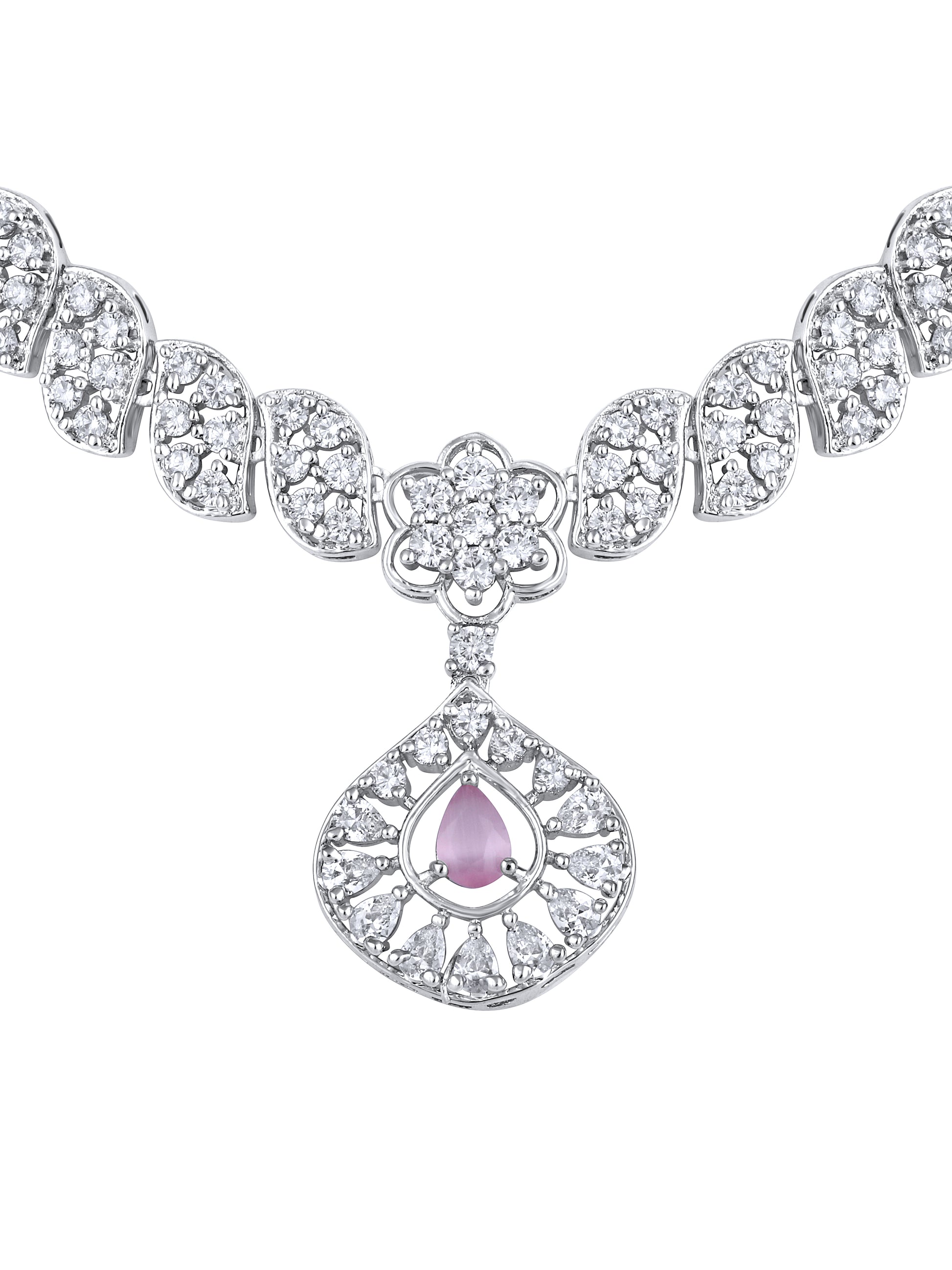 Rhodium-plated necklace, has pink and white cubic zirconia & American diamond stone-studded details