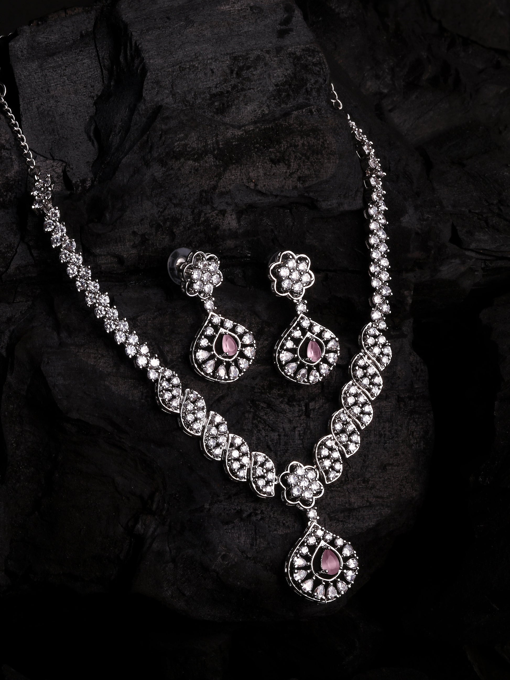 Rhodium-Plated Cubic Zirconia & American Diamond Studded Jewellery Set