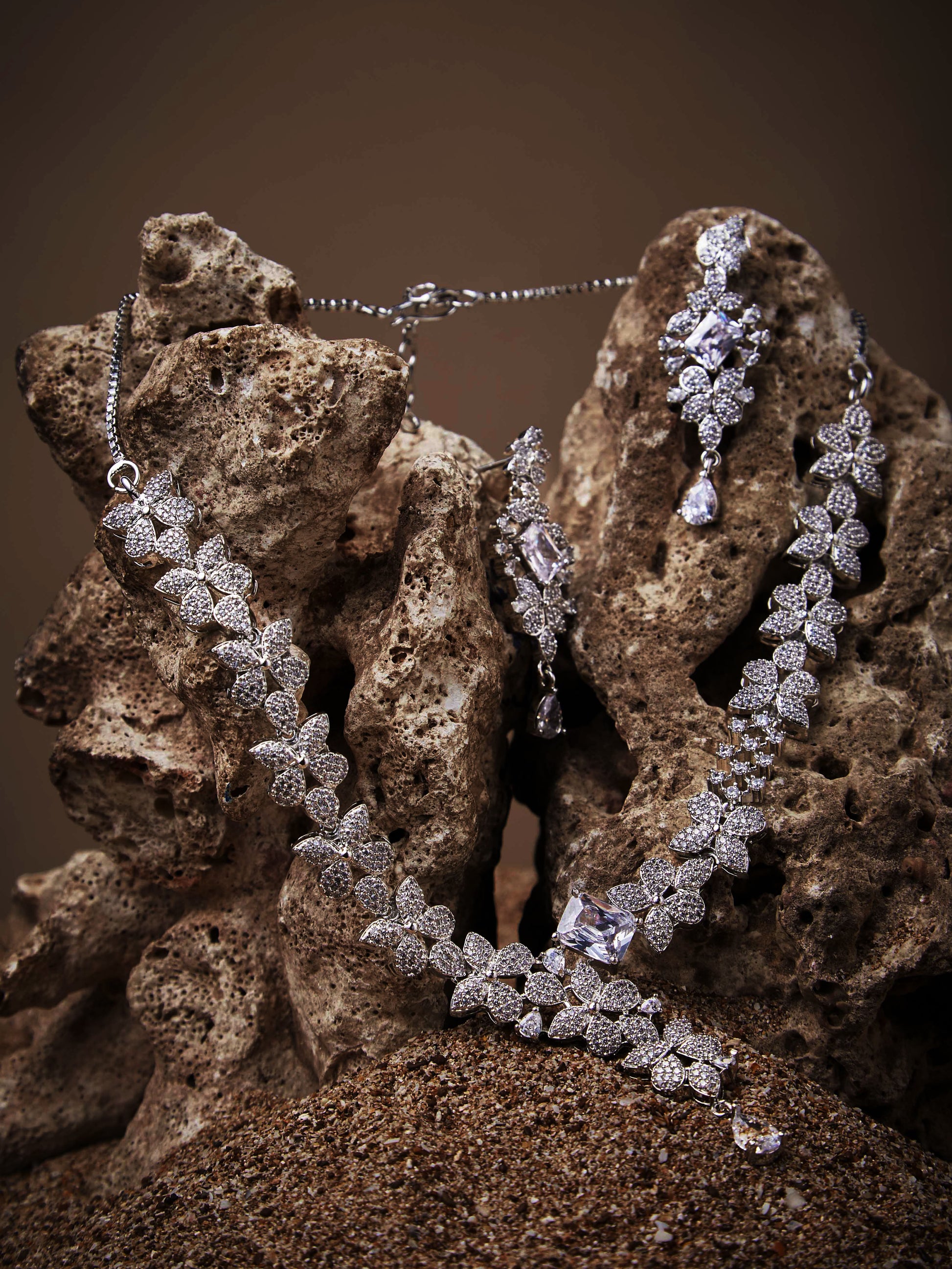Rhodium-Plated Cubic Zirconia-Studded Statement Jewellery Set