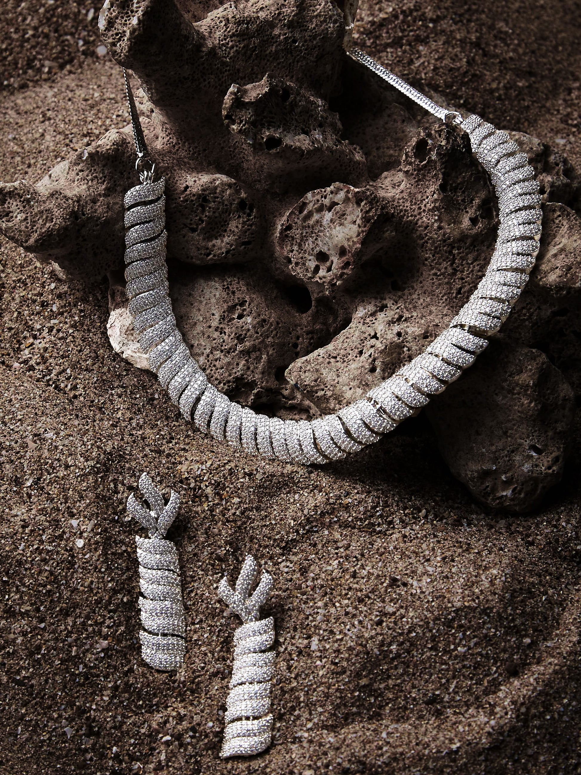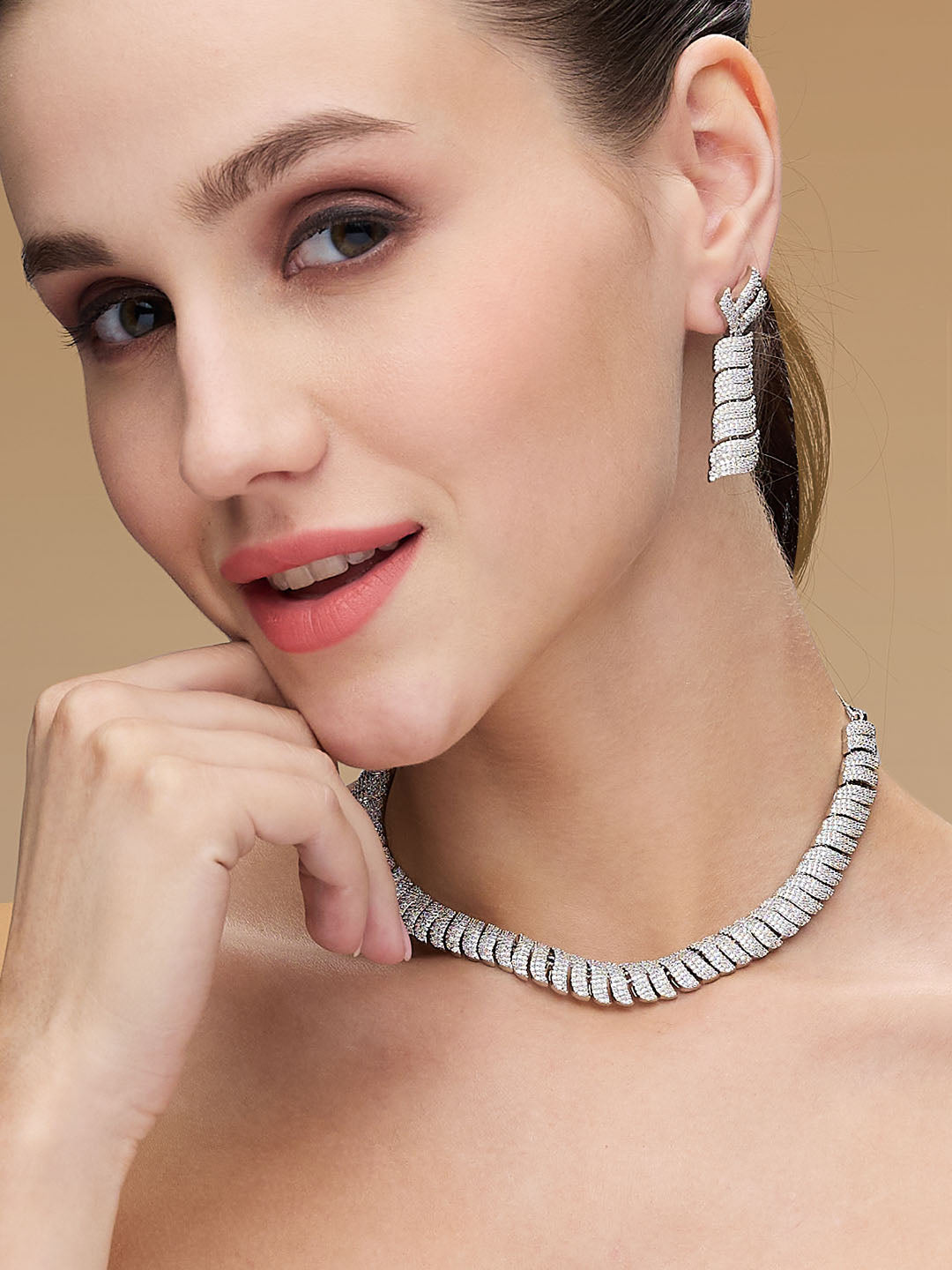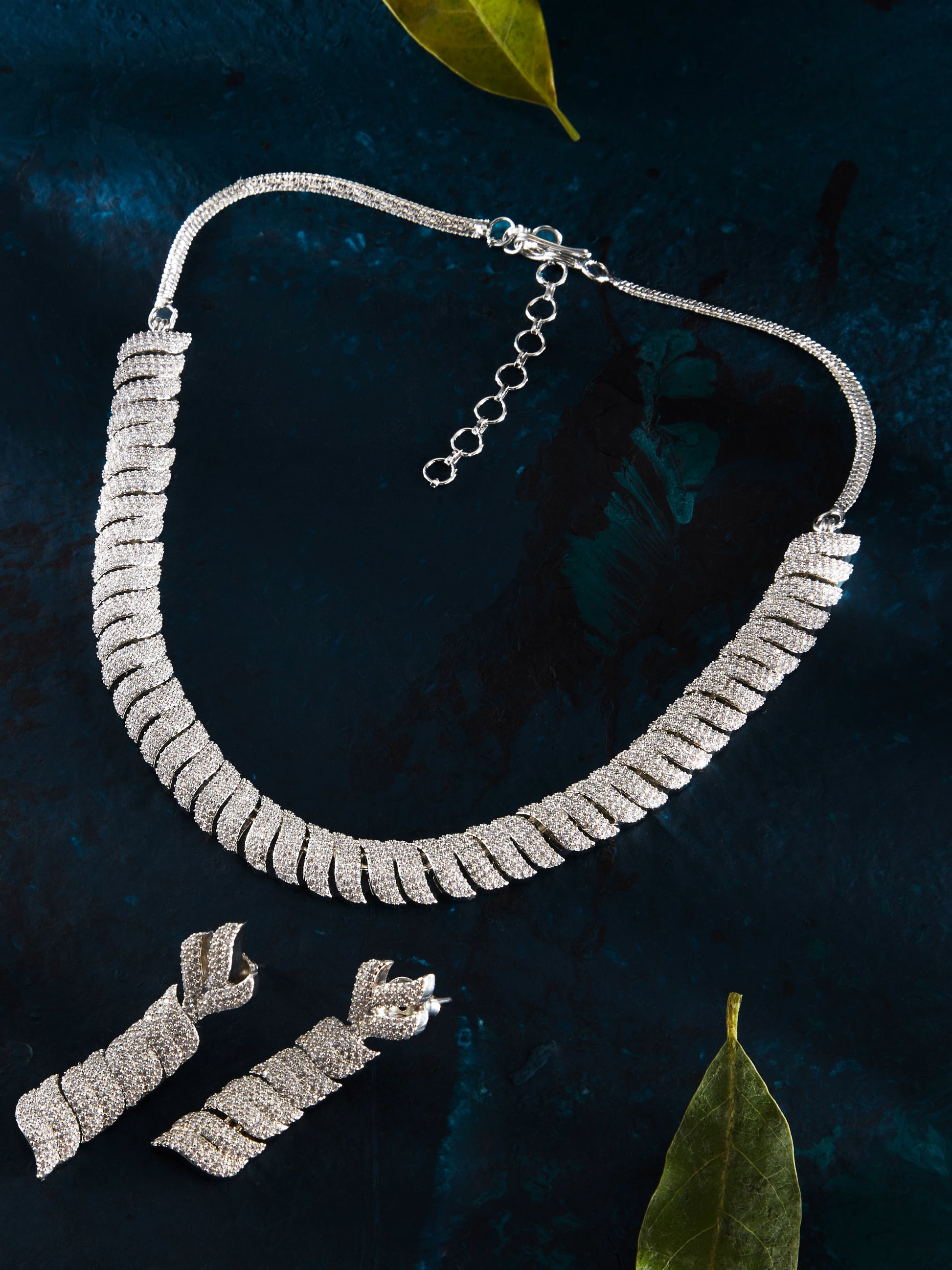 Rhodium-Plated Cubic Zirconia-Studded Statement Jewellery Set