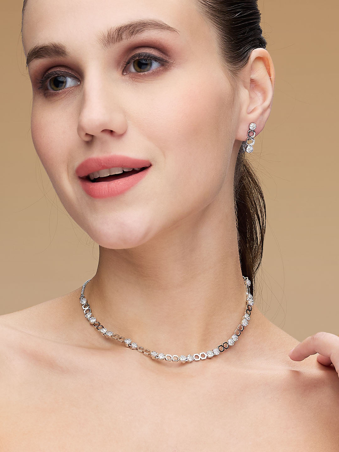 Rhodium-Plated Cubic Zirconia-Studded Delicate Choker Jewellery Set