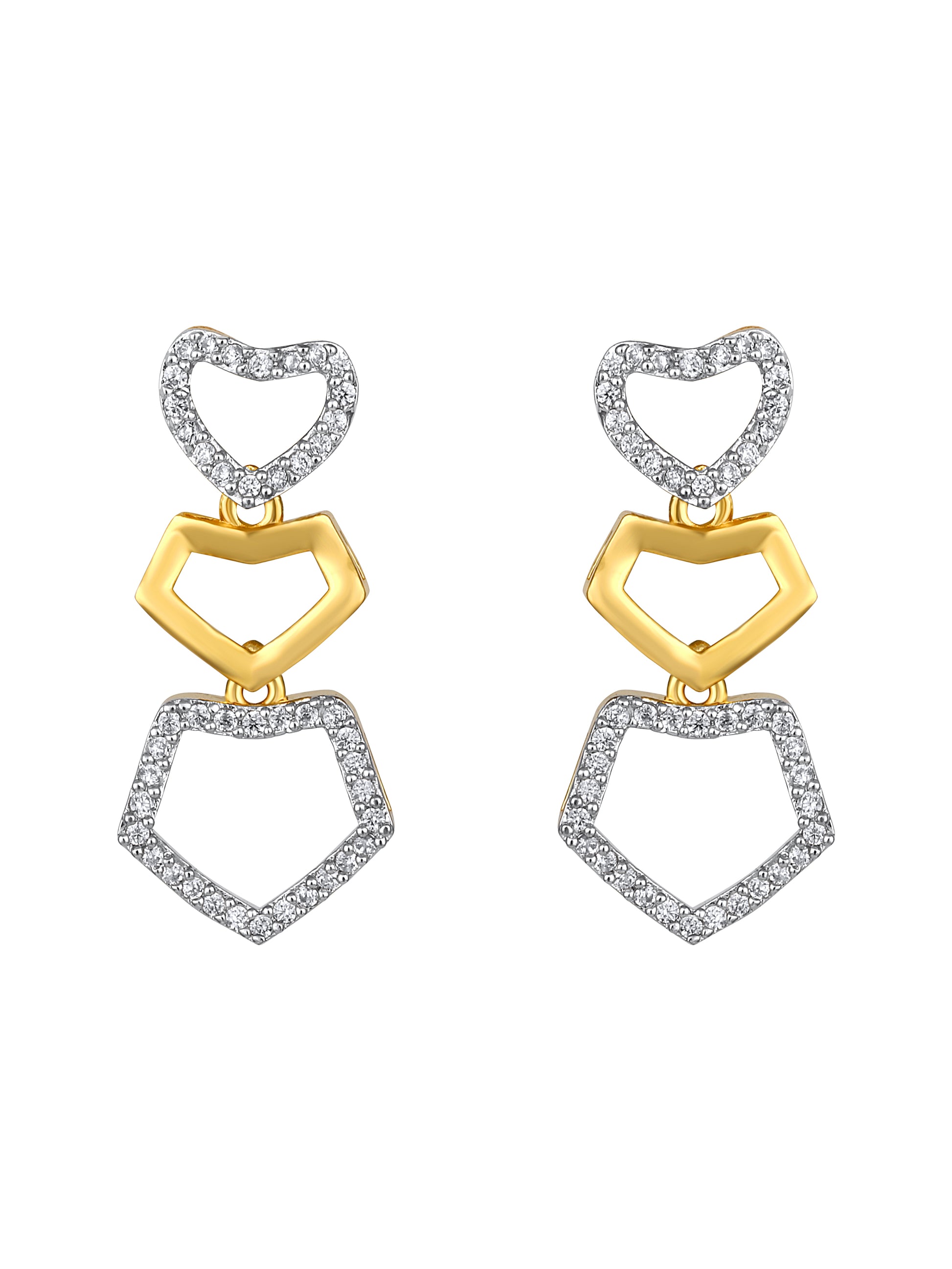 A pair of matching drop earrings, each secured with a post-and-back closure