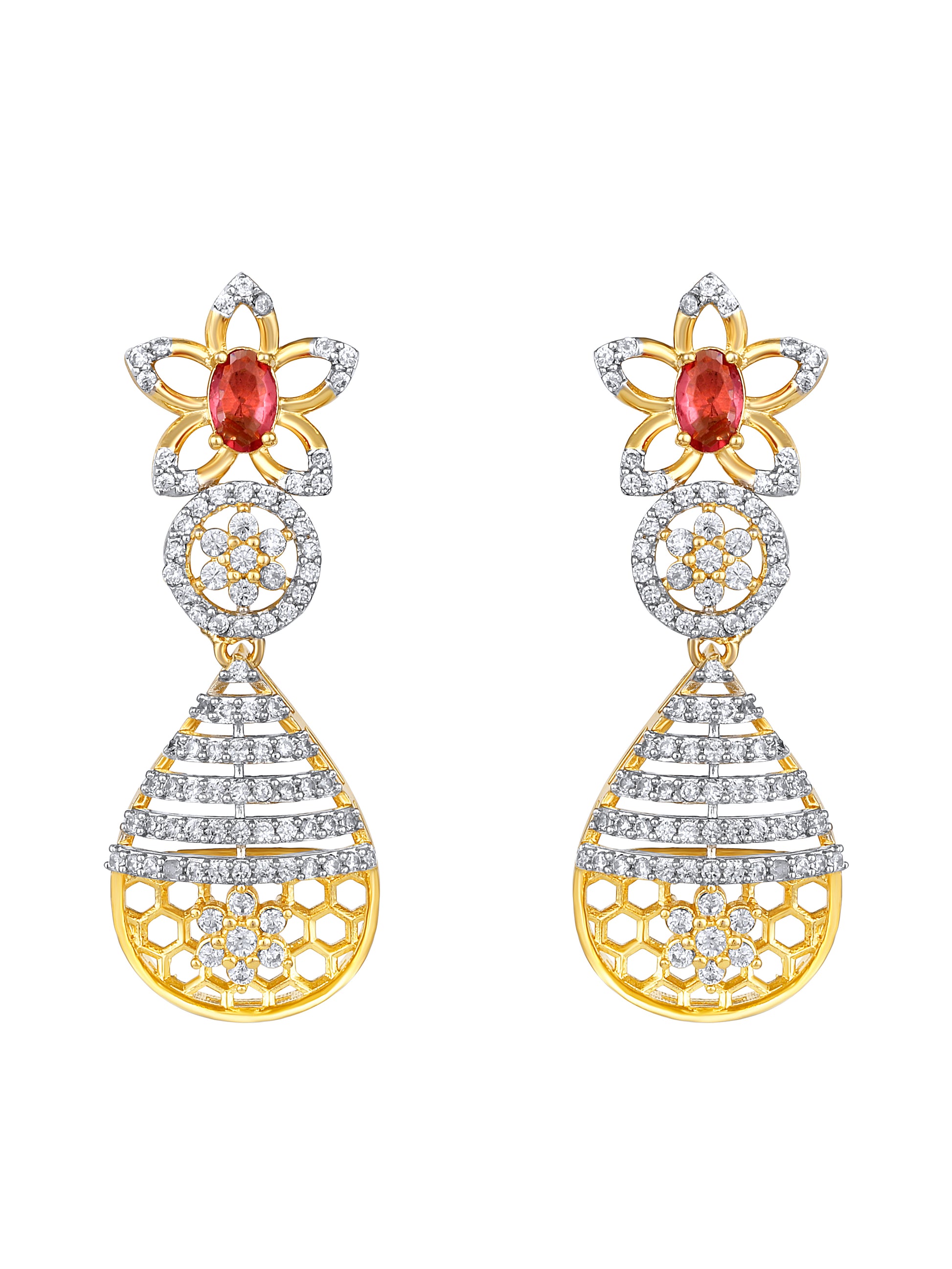 22K Gold-plated necklace, has red and white cubic zirconia stone-studded details