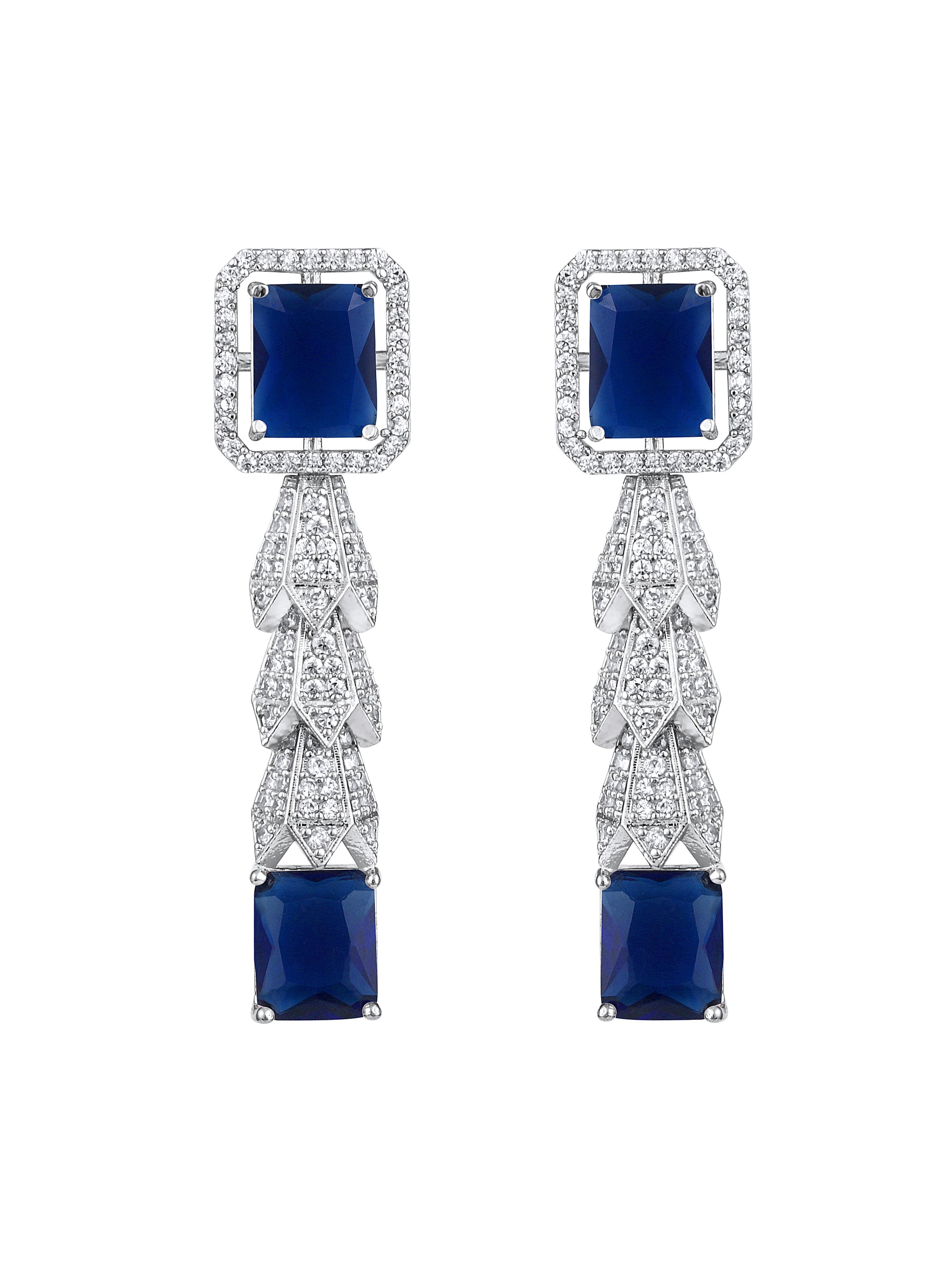 Rhodium-plated necklace, has blue and white cubic zirconia & American diamond stone-studded details