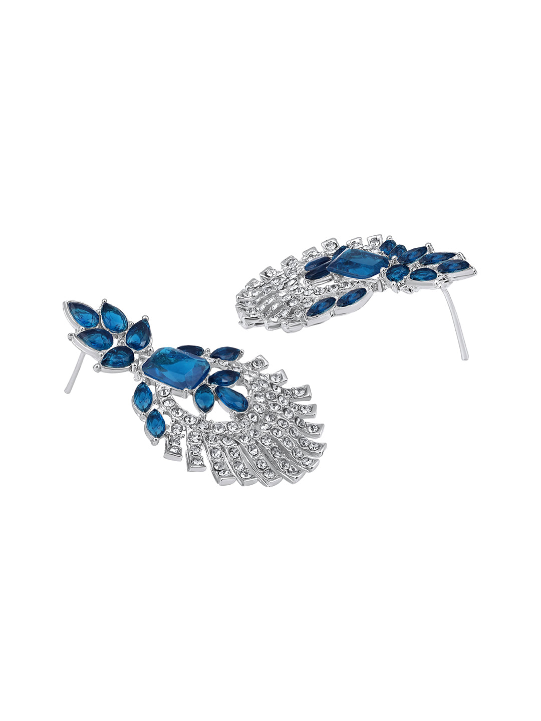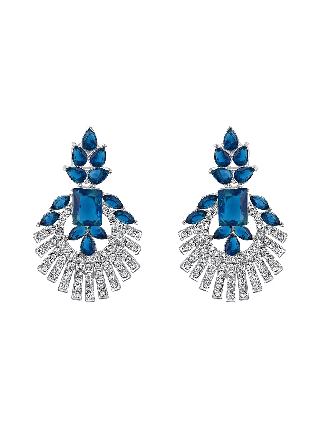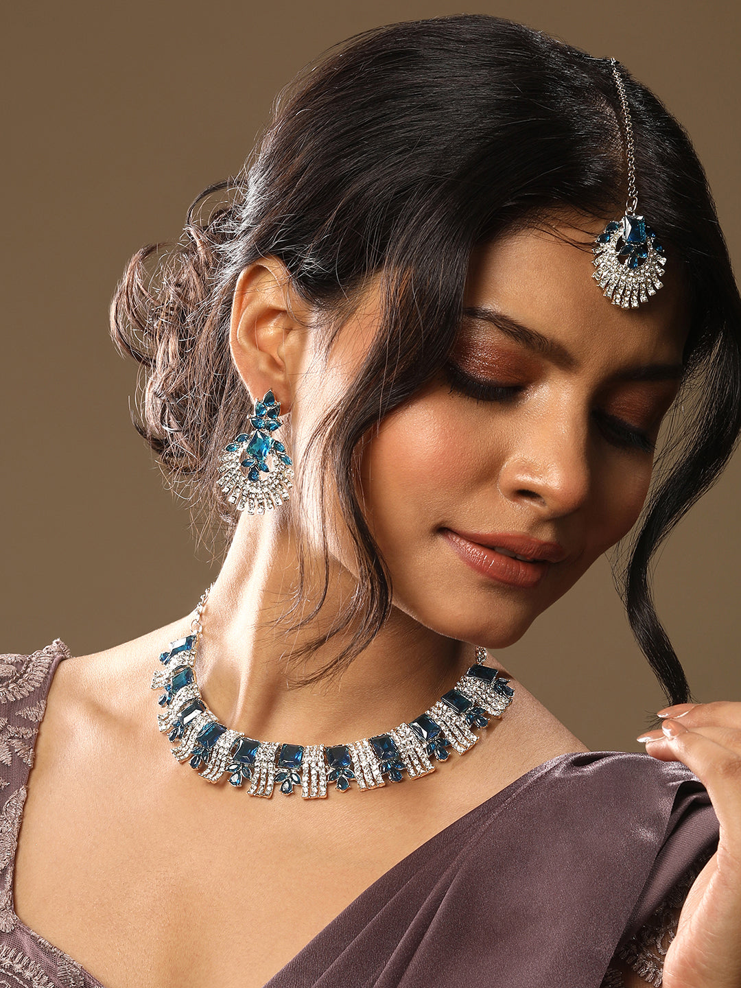 Rhodium Plated Royal Blue And White Stone Studded Choker Jewellery Set