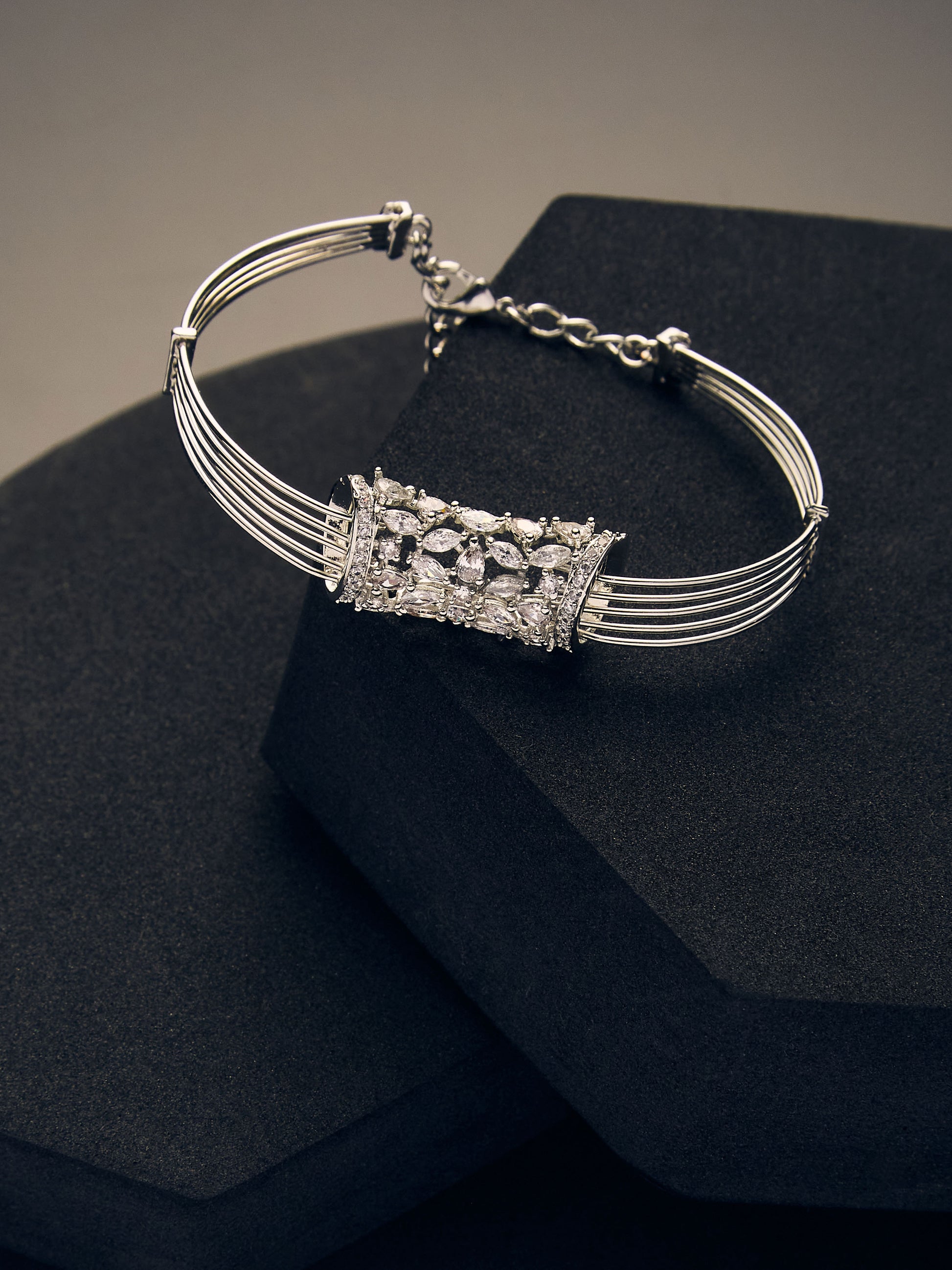 Rhodium-Plated American Diamond Studded Link Bracelet