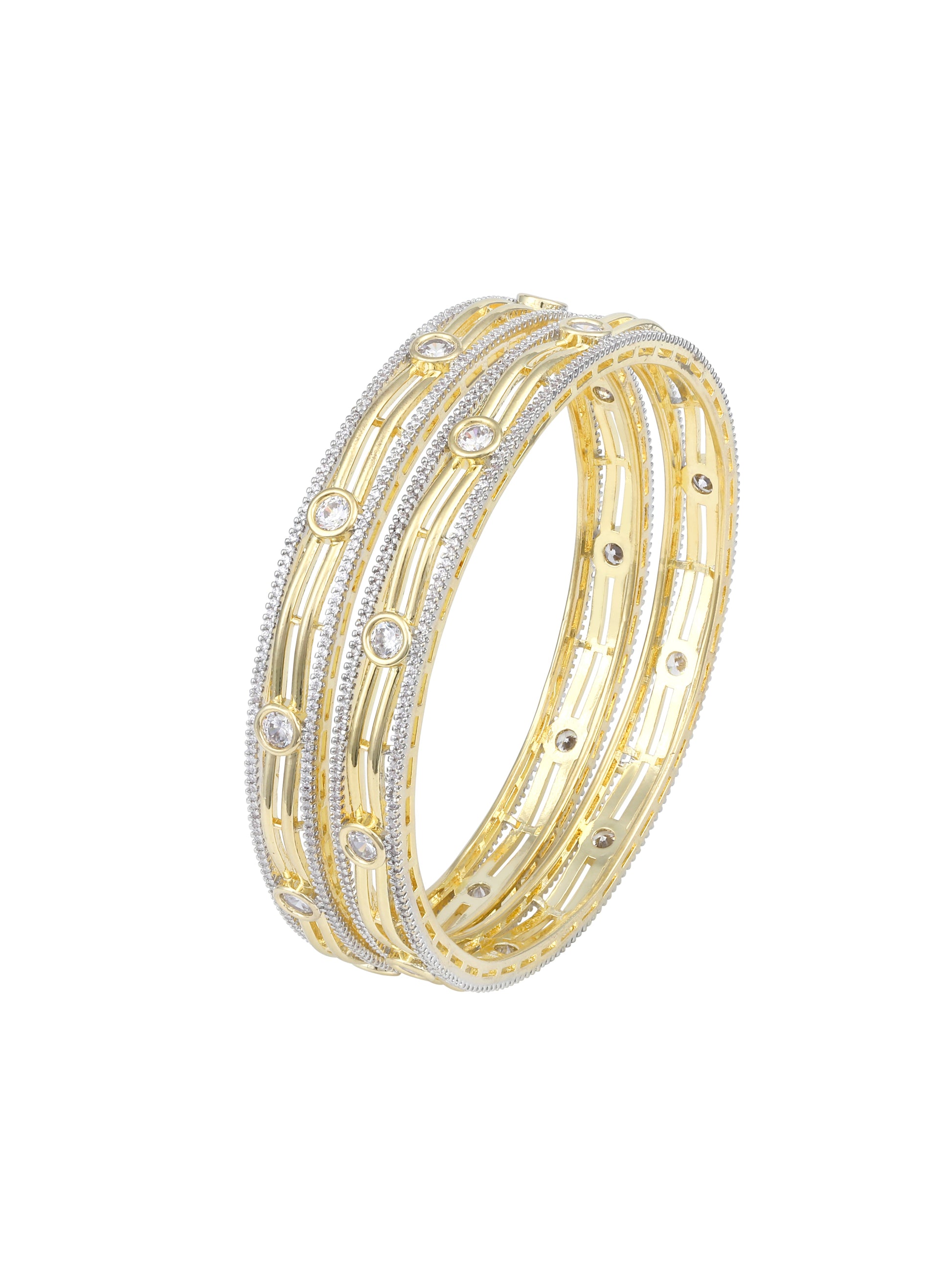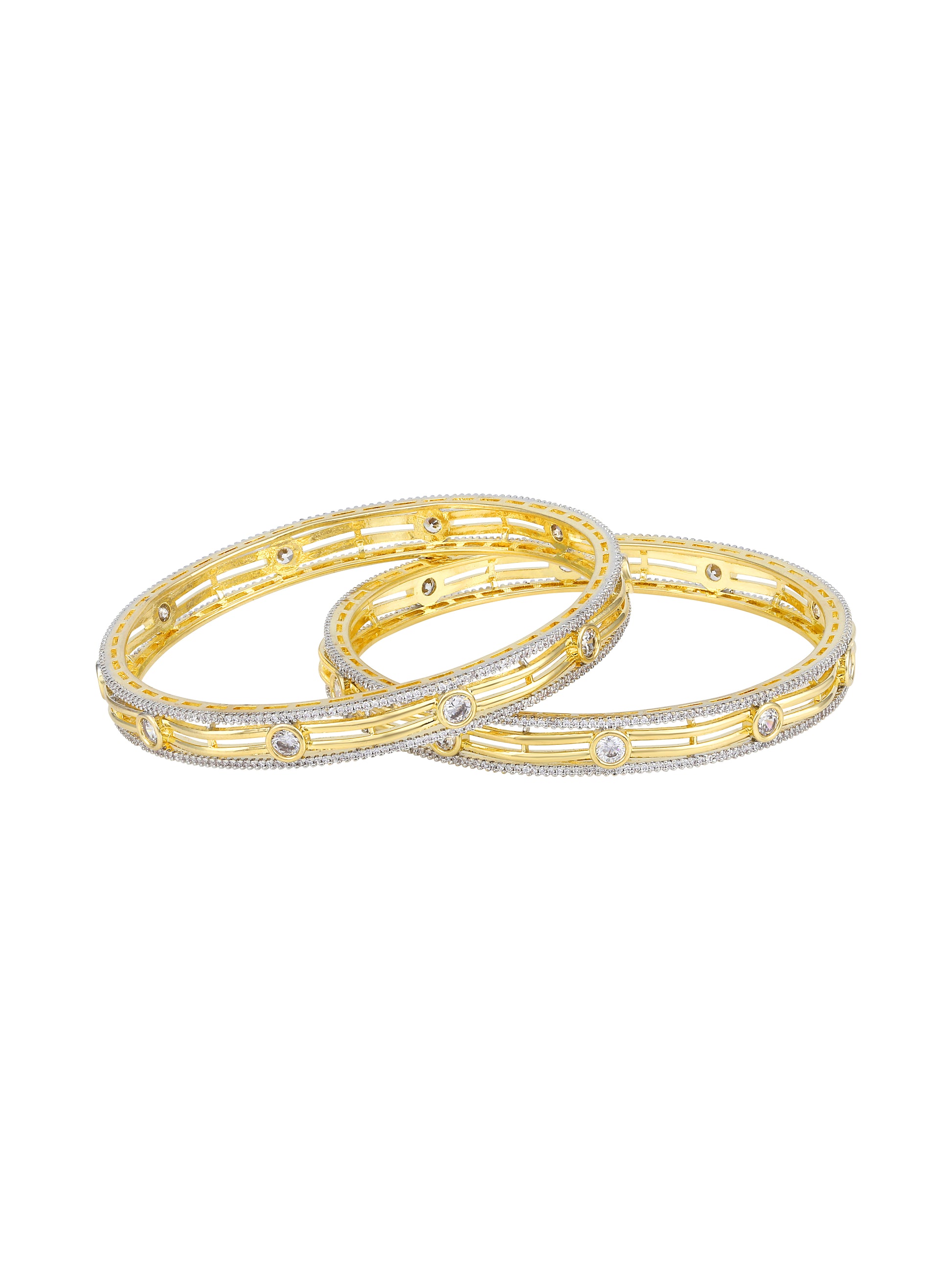 Set Of 2 Gold-Plated CZ Studded Bangles