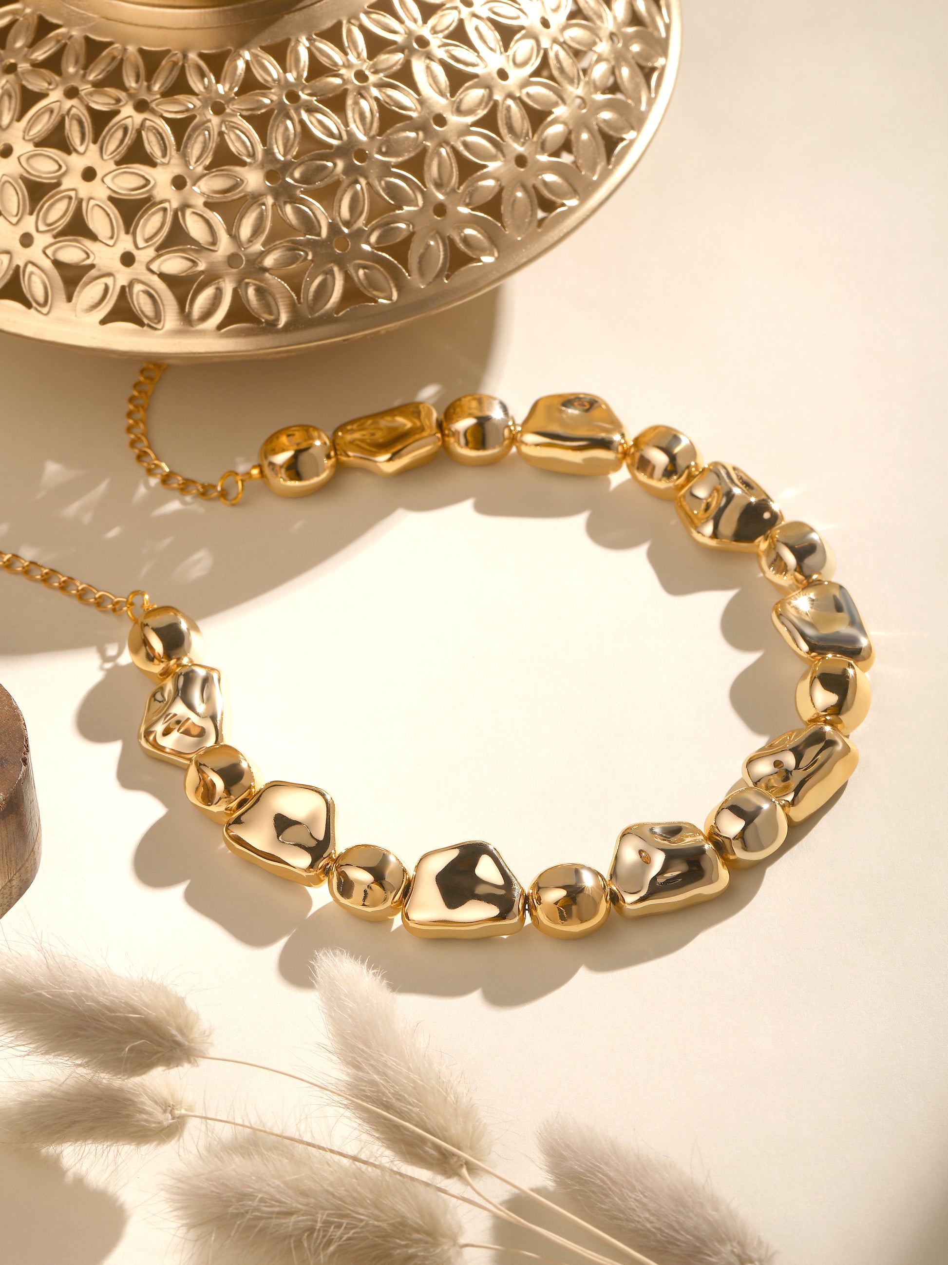 Statement Design – Bold and stylish choker necklace with detailed bead accents.