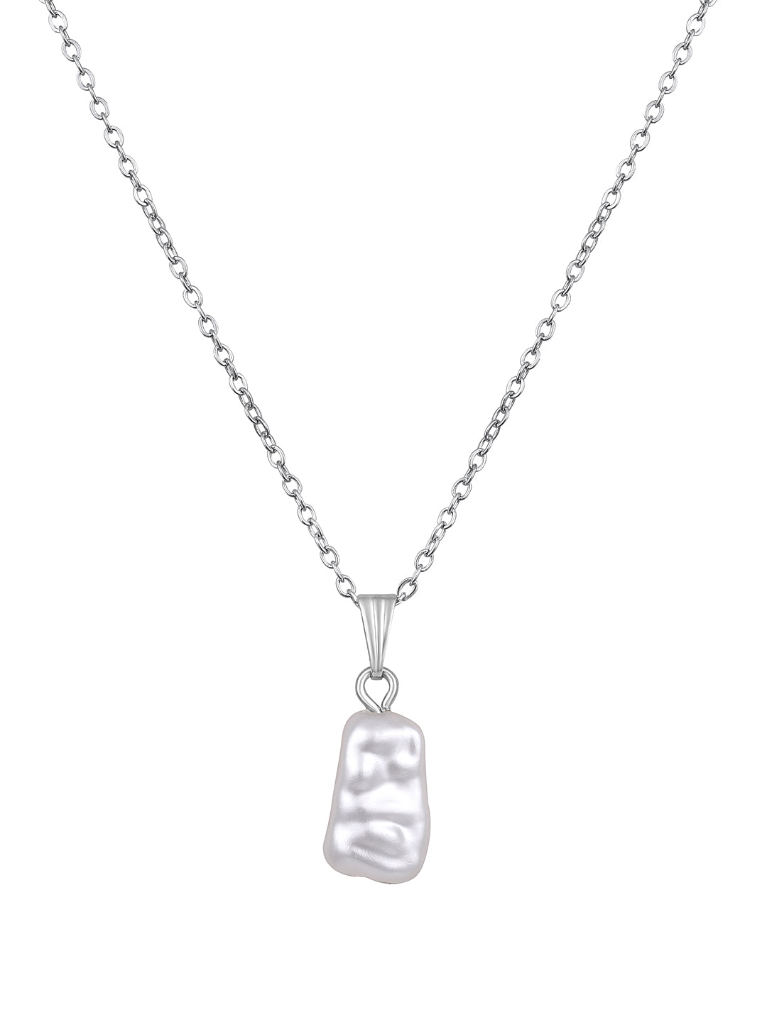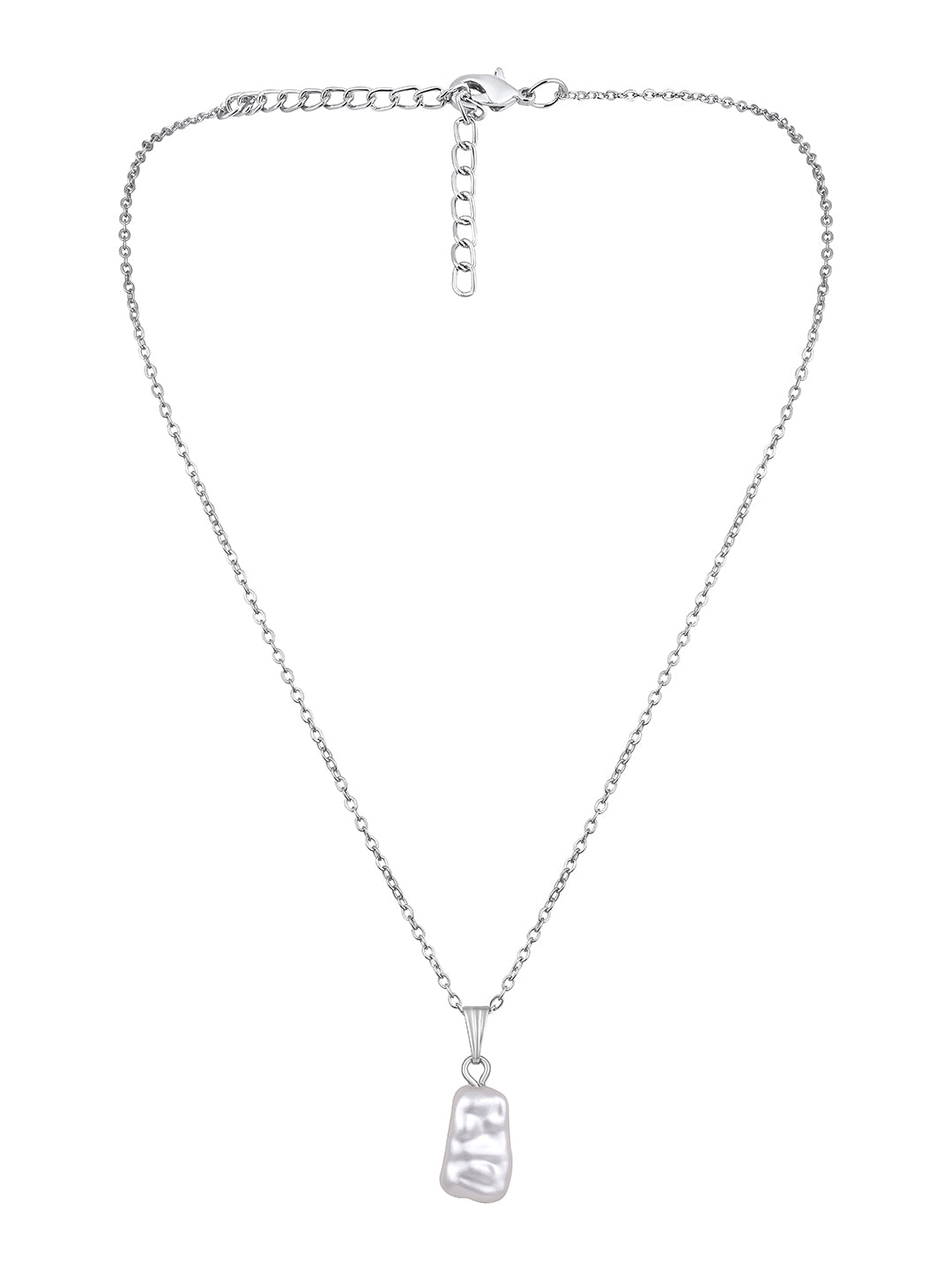Contemporary Rhodium Plated Pearl Charm Pendant With Chain For Women